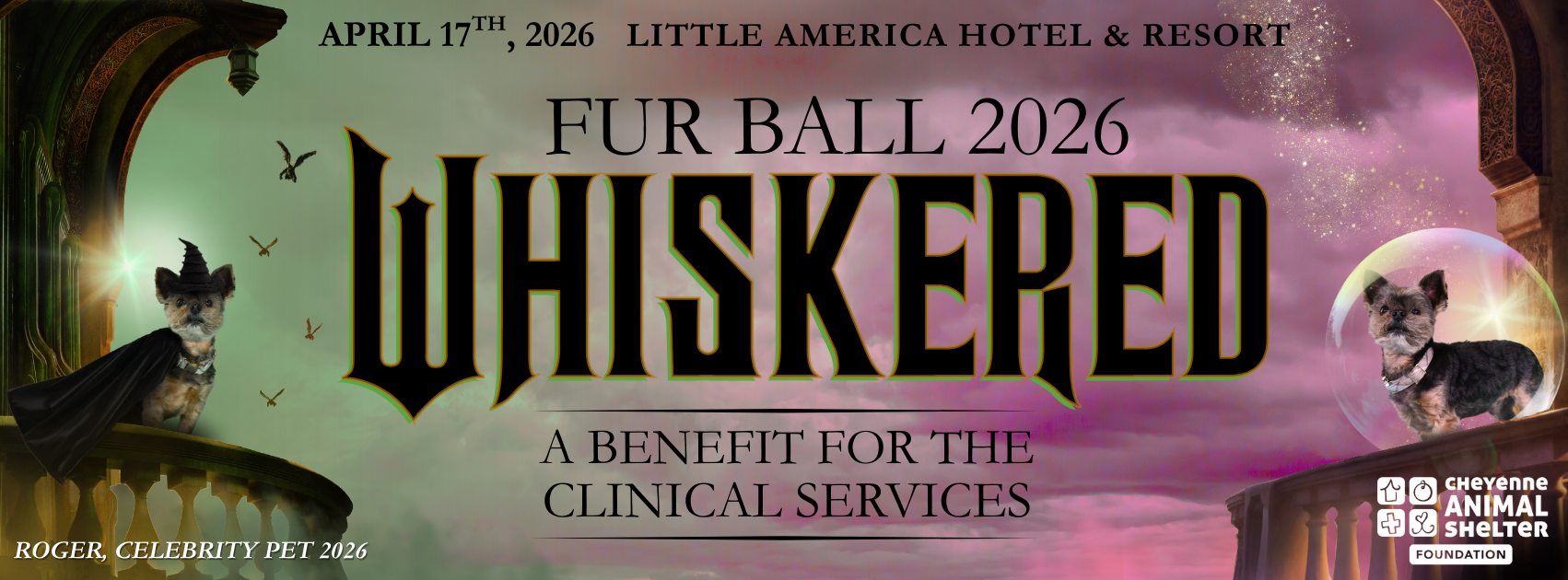 On April 17th, step into a magical evening where compassion takes center stage and every act of kindness has the power to change a life. This year, all funds raised during Fur Ball 2026: Whiskered will support the Clinical Services of the Cheyenne Animal Shelter—helping ensure that every animal receives the care, comfort, and second chances they deserve.